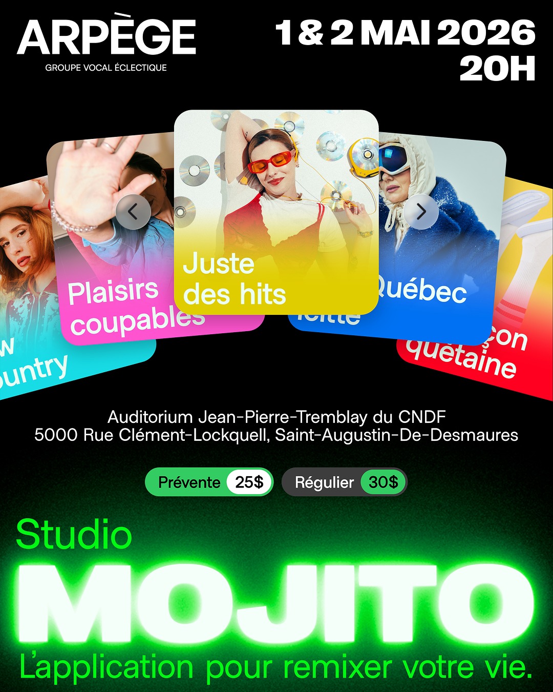 Engagez le groupe vocal Arpège pour votre évémnement. Que ce soit comme tête d’affiche, pour accompagner un repas ou pour être bercé par nos chants de Noël, nous avons une formule pour vous!
